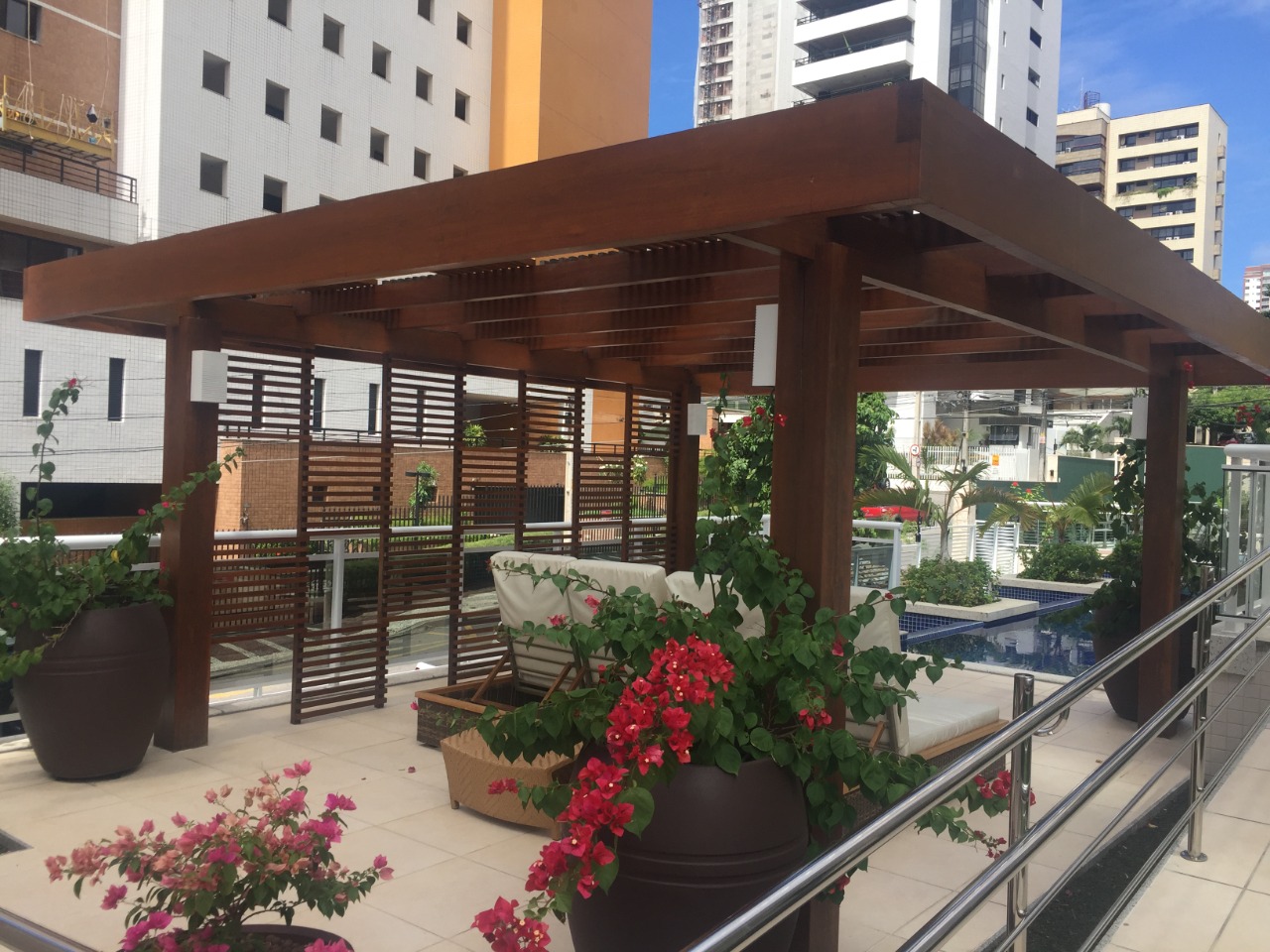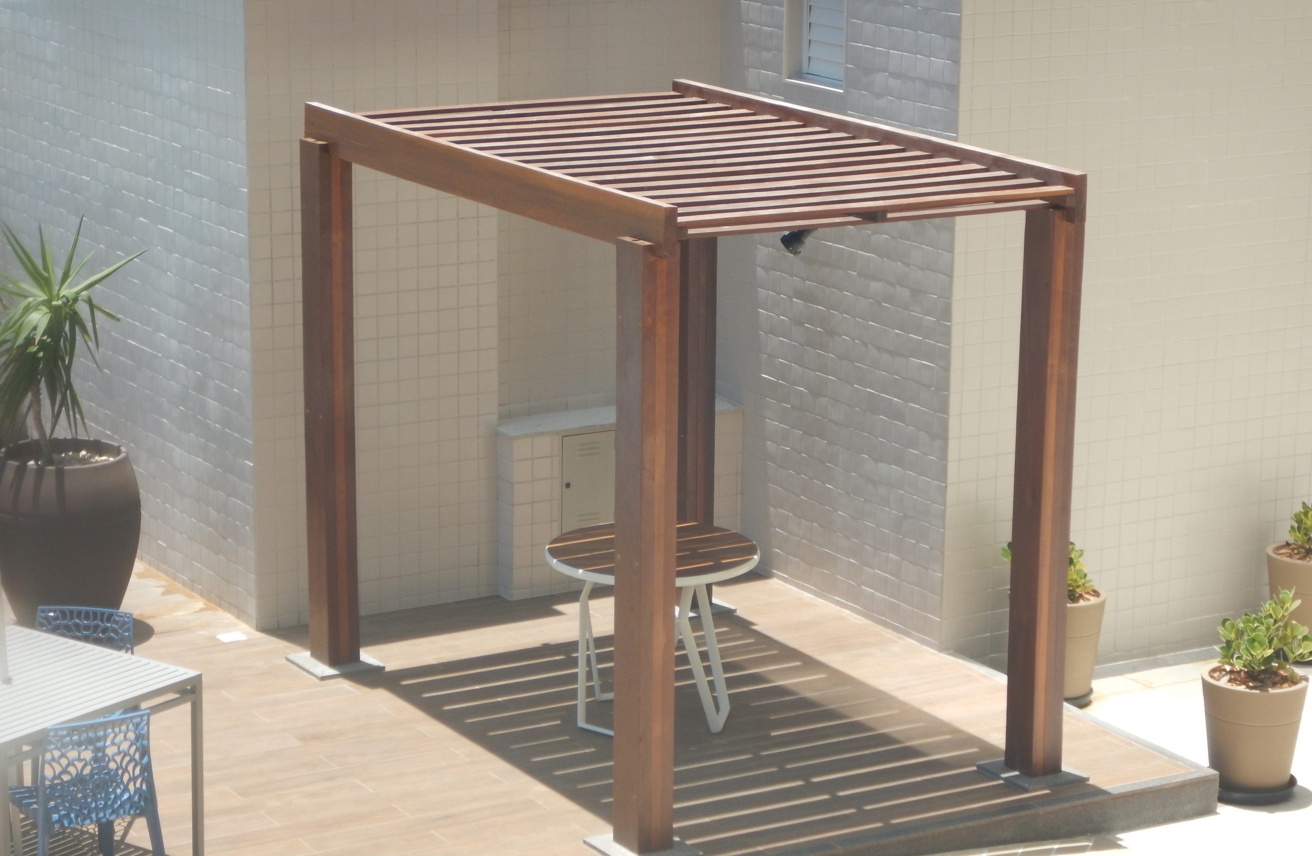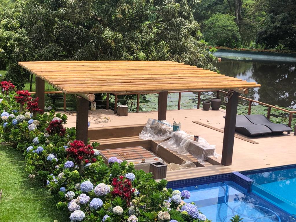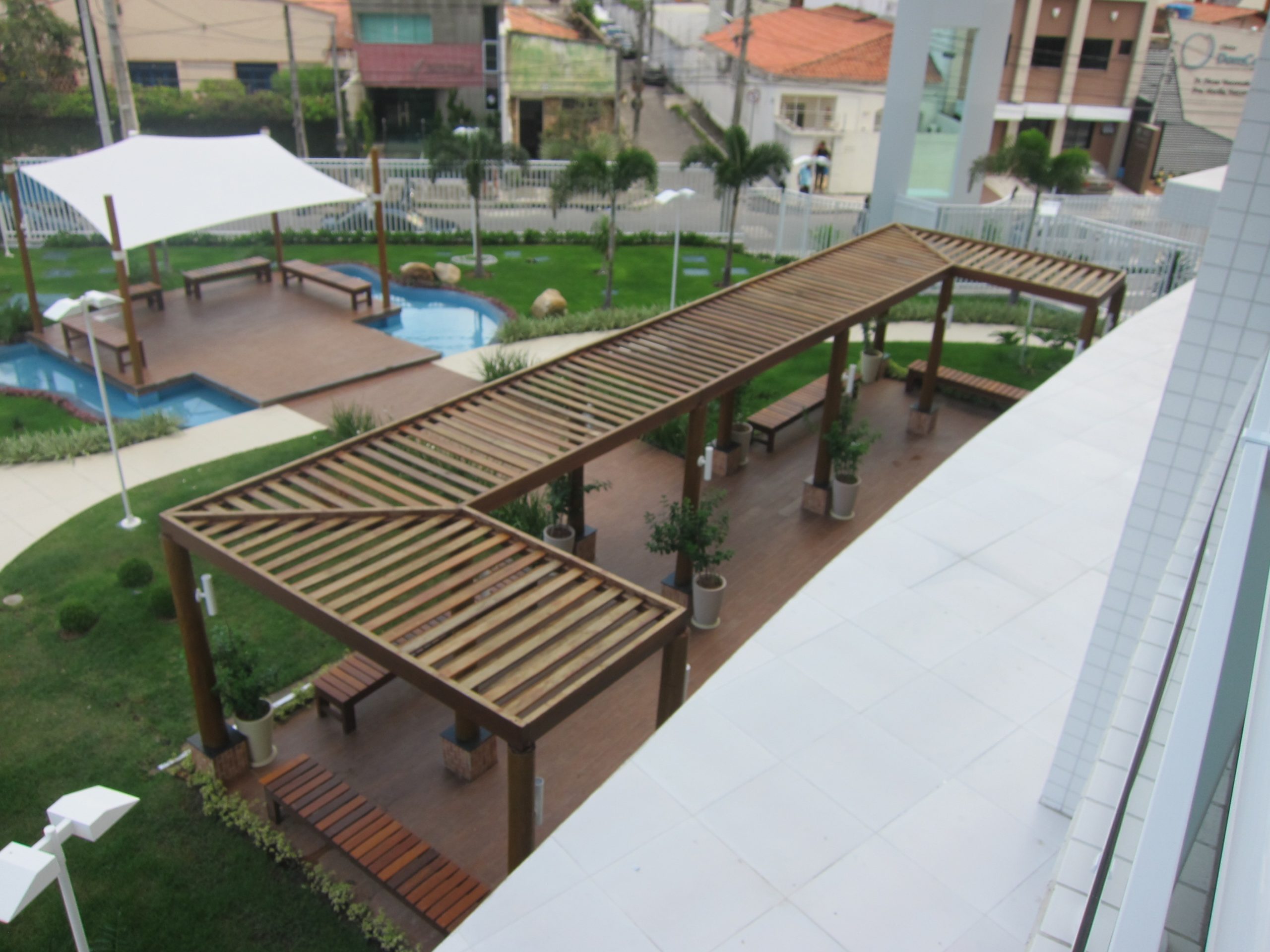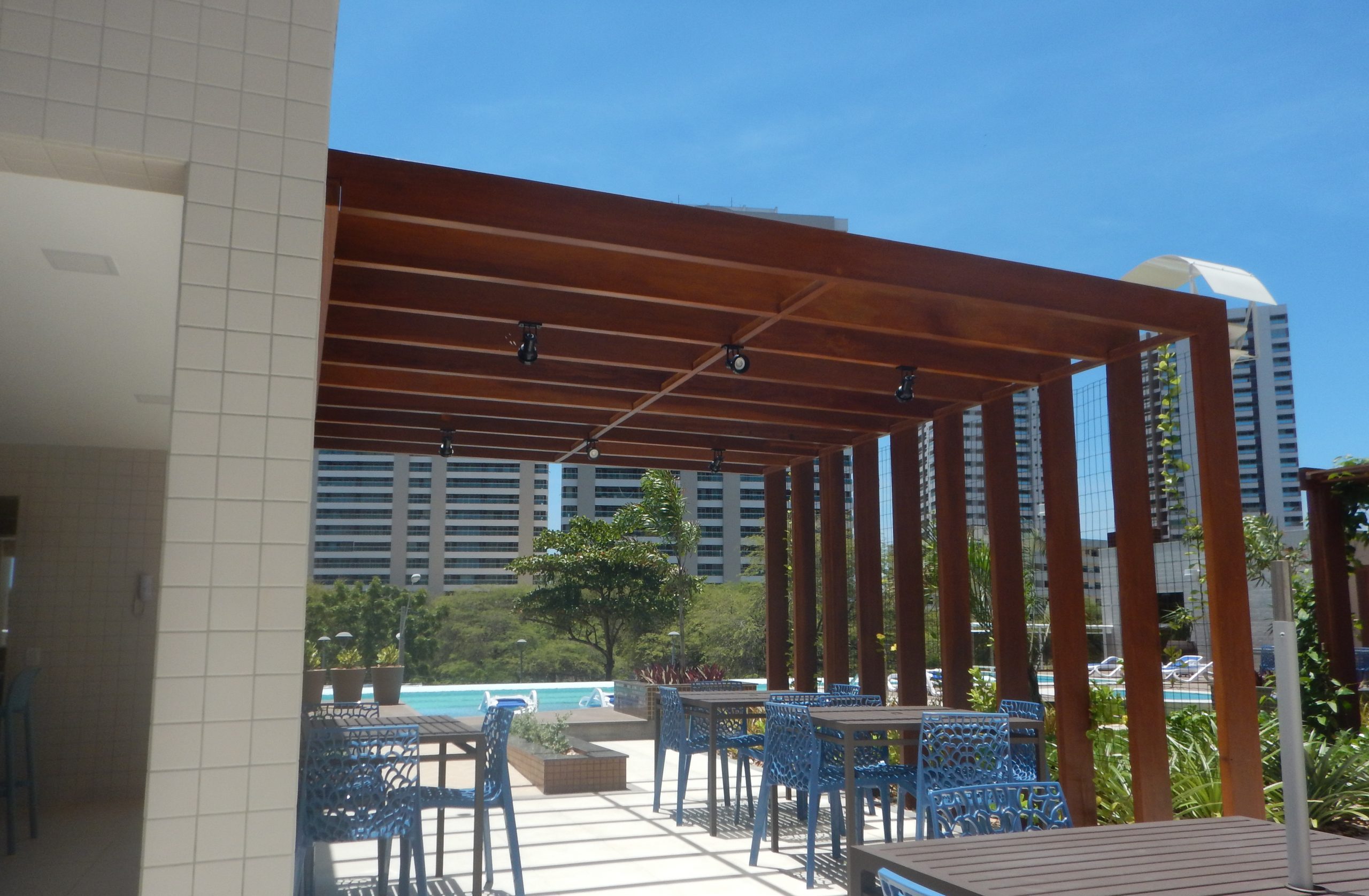 Os caramanchões e pergolados, são uma boa alternativa para quem gosta de uma área de lazer moderna e florida. Essa estrutura geralmente é de madeira (eucalipto autoclavado, madeira de lei ou ipê), e funciona como uma cobertura. Esses produtos apesar de darem um ar mais rústico, são mais leves e funcionam como uma extensão da casa/varanda. O acabamento das peças é feito com lixamento e aplicação de Osmocolor Stain. Os dois podem ser feitos de forma personalizada conforme o seu projeto, e são ótimas opções para criar cantinhos especiais e de relaxamento.