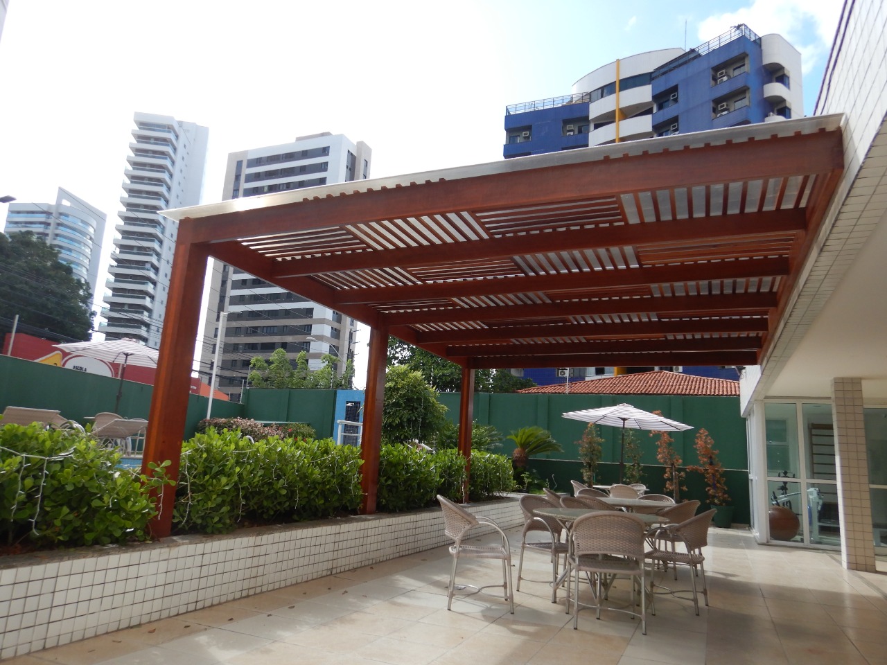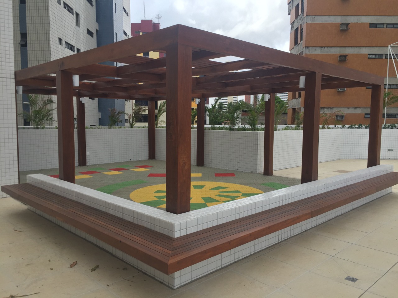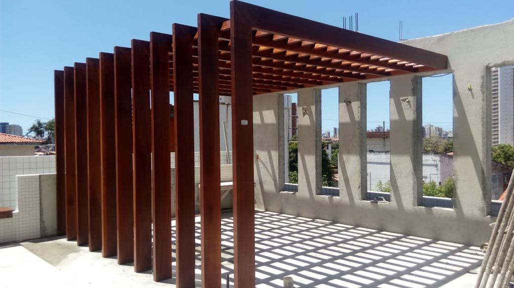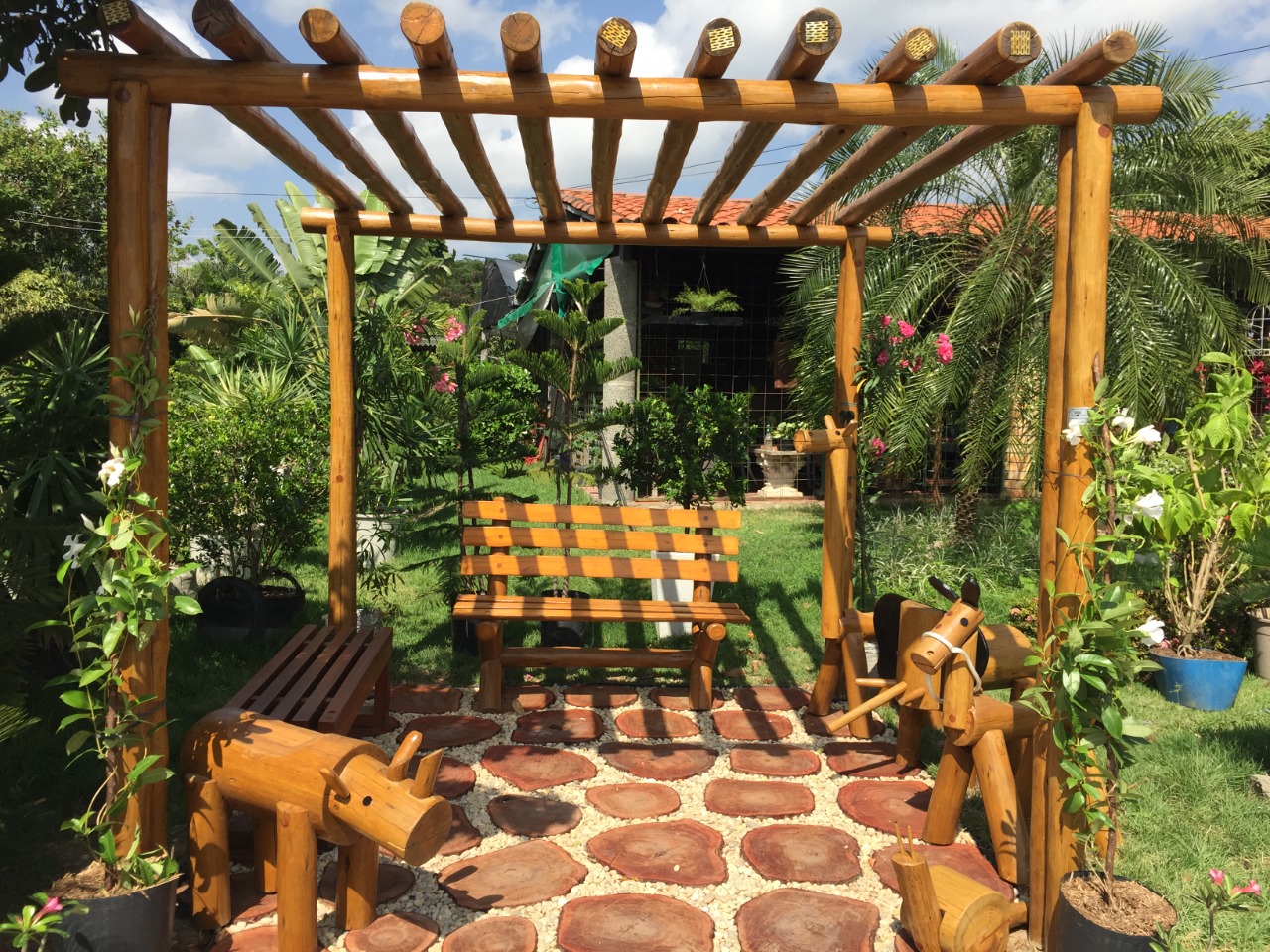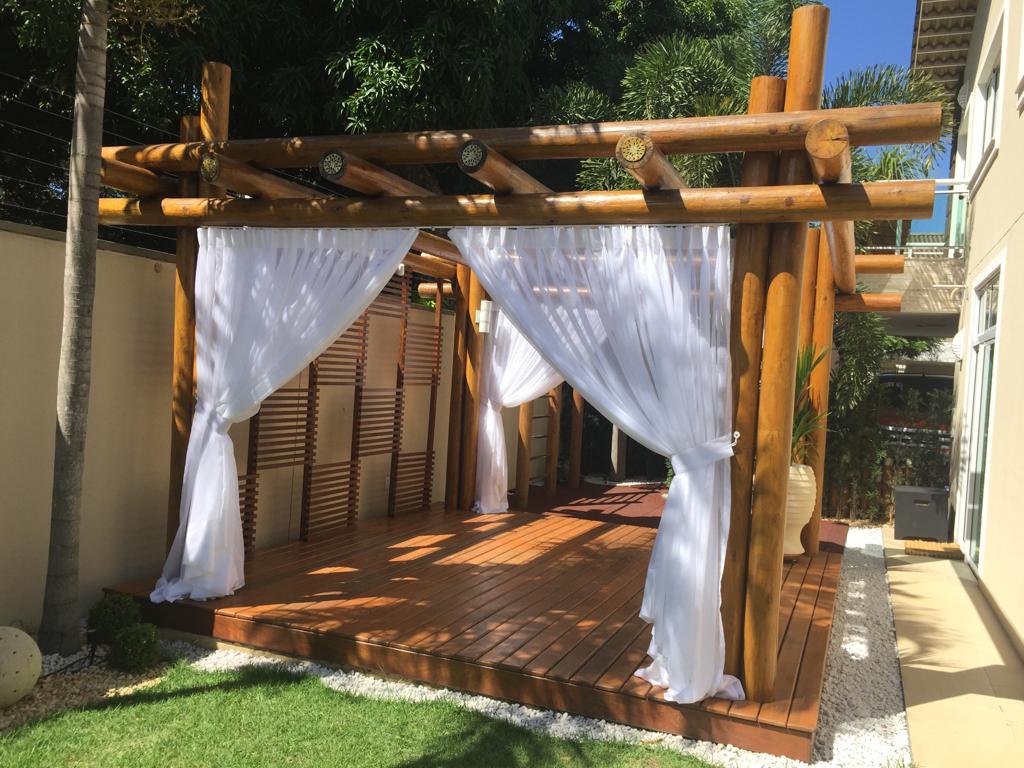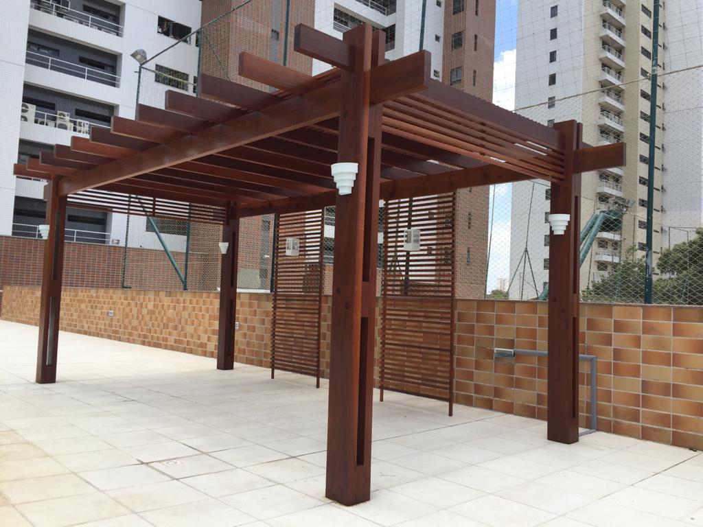 Os caramanchões e pergolados, são uma boa alternativa para quem gosta de uma área de lazer moderna e florida. Essa estrutura geralmente é de madeira (eucalipto autoclavado, madeira de lei ou ipê), e funciona como uma cobertura. Esses produtos apesar de darem um ar mais rústico, são mais leves e funcionam como uma extensão da casa/varanda. O acabamento das peças é feito com lixamento e aplicação de Osmocolor Stain. Os dois podem ser feitos de forma personalizada conforme o seu projeto, e são ótimas opções para criar cantinhos especiais e de relaxamento.