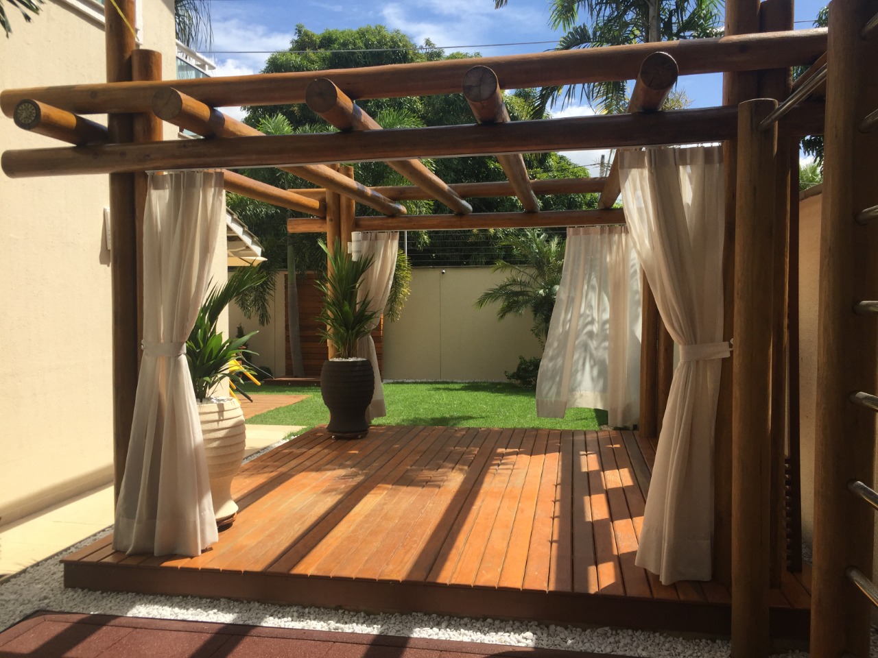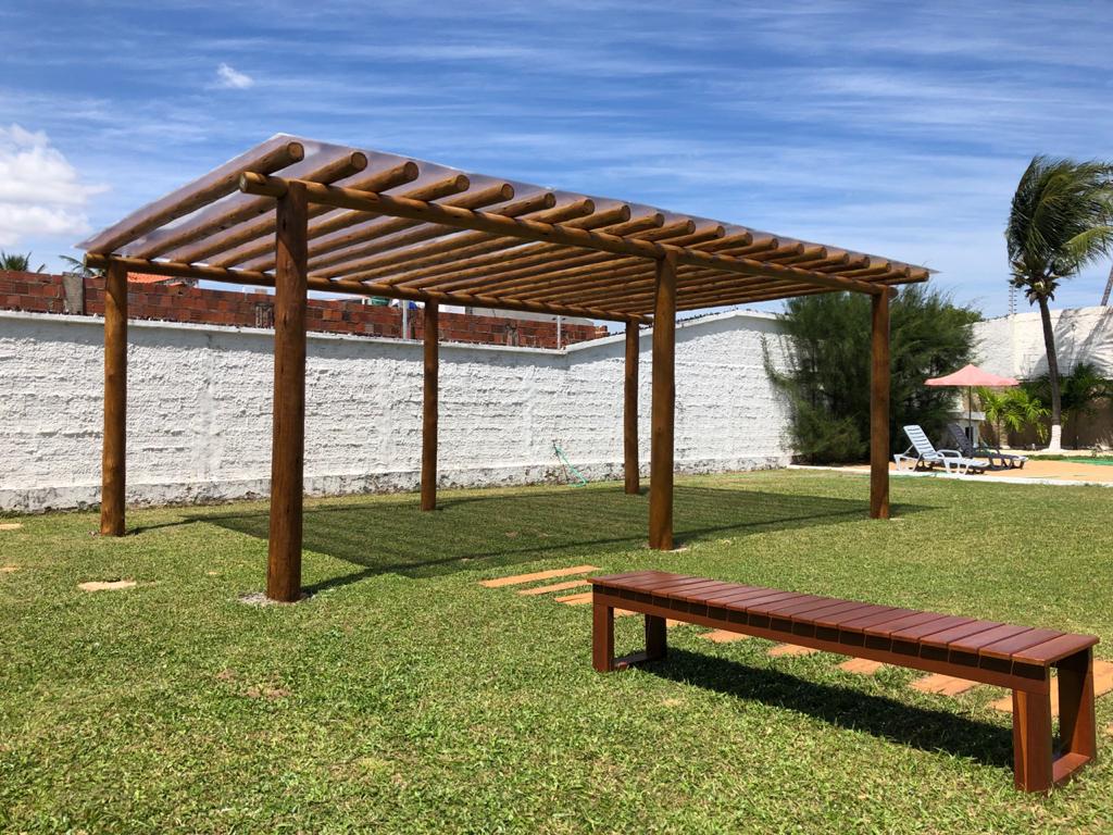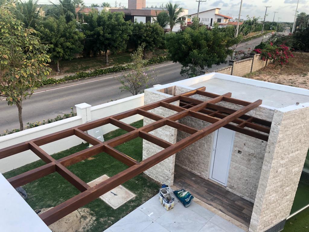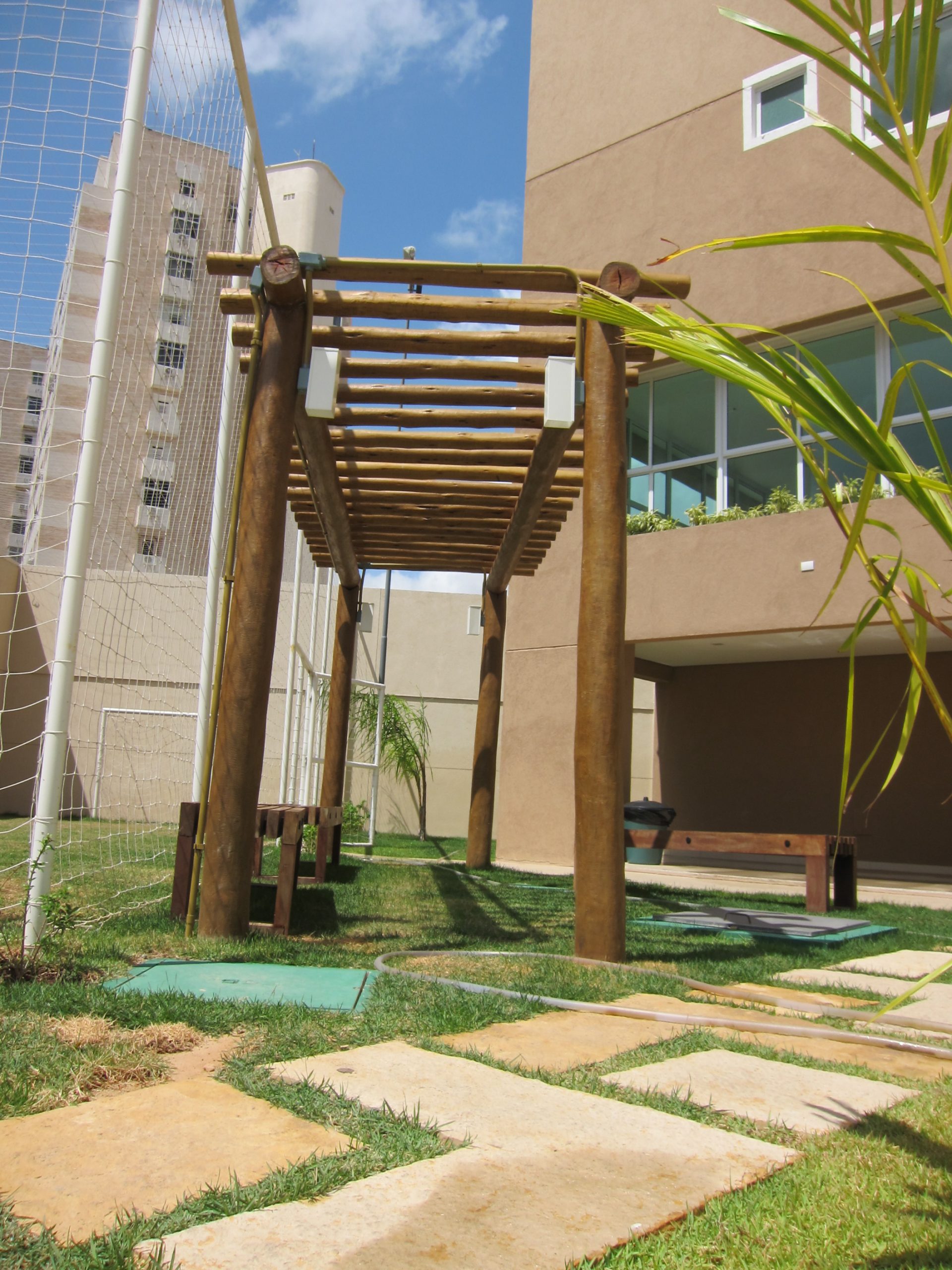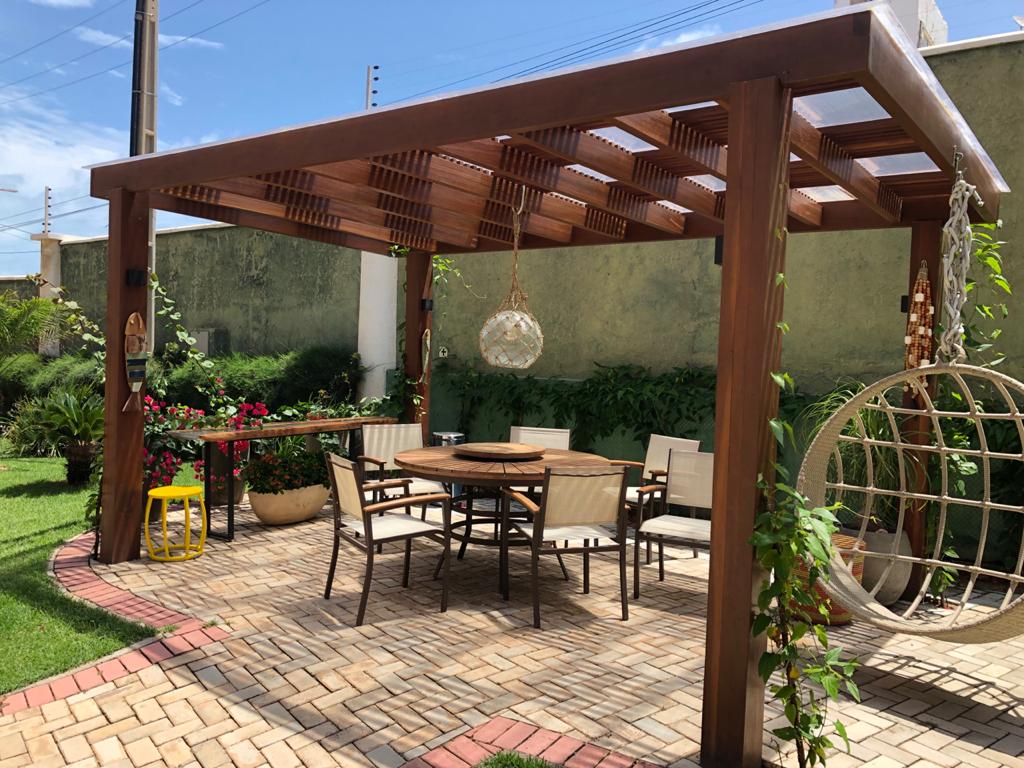 Os caramanchões e pergolados, são uma boa alternativa para quem gosta de uma área de lazer moderna e florida. Essa estrutura geralmente é de madeira (eucalipto autoclavado, madeira de lei ou ipê), e funciona como uma cobertura. Esses produtos apesar de darem um ar mais rústico, são mais leves e funcionam como uma extensão da casa/varanda. O acabamento das peças é feito com lixamento e aplicação de Osmocolor Stain. Os dois podem ser feitos de forma personalizada conforme o seu projeto, e são ótimas opções para criar cantinhos especiais e de relaxamento.