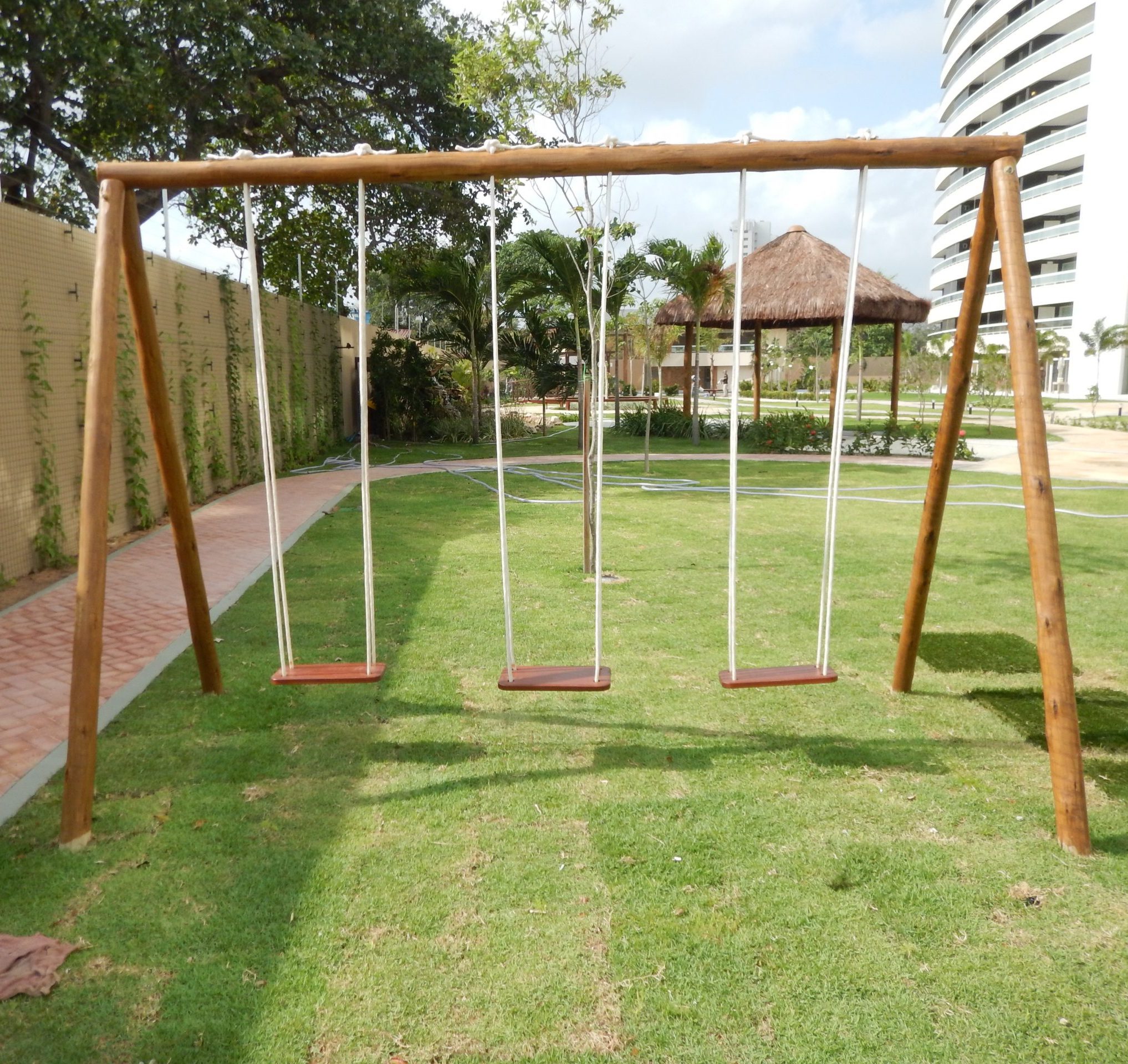 Nossos balanços são fabricados de acordo com o modelo escolhido pelo cliente. Os materiais são produzidos em eucalipto autoclavado com assentos em madeira e corda náutica.
