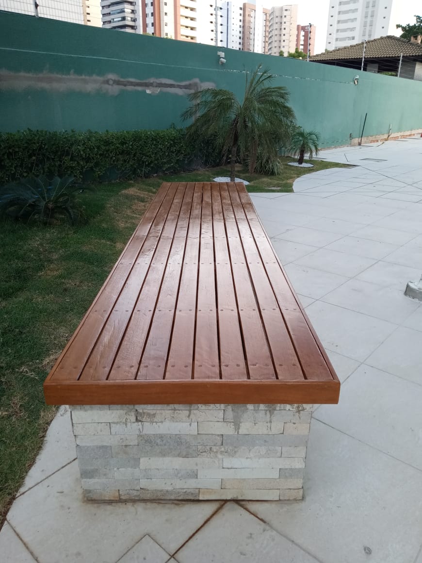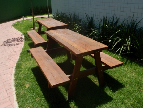 Nossos bancos e mesas em madeira são produzidos em diversos modelos, de acordo com o seu projeto e feitos em madeira de ou eucalipto autoclavado e madeira de lei, o acabamento das peças é feito com lixamento e aplicação de Osmocolor Stain. Eles dão um charme todo especial ao seu ambiente e um toque rústico que traz elegância.