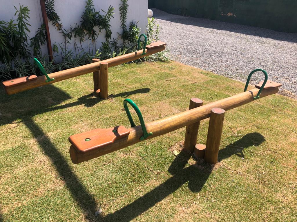Nossa gangorra com assento de madeira, proporciona as crianças, uma das melhores diversões. Ela possui alta resistência e segurança, e é produzida em eucalipto autoclavado e madeira de lei. Com pega-mão em ferro galvanizado e pintura automotiva/PU, com proteção para cabeça de parafuso.