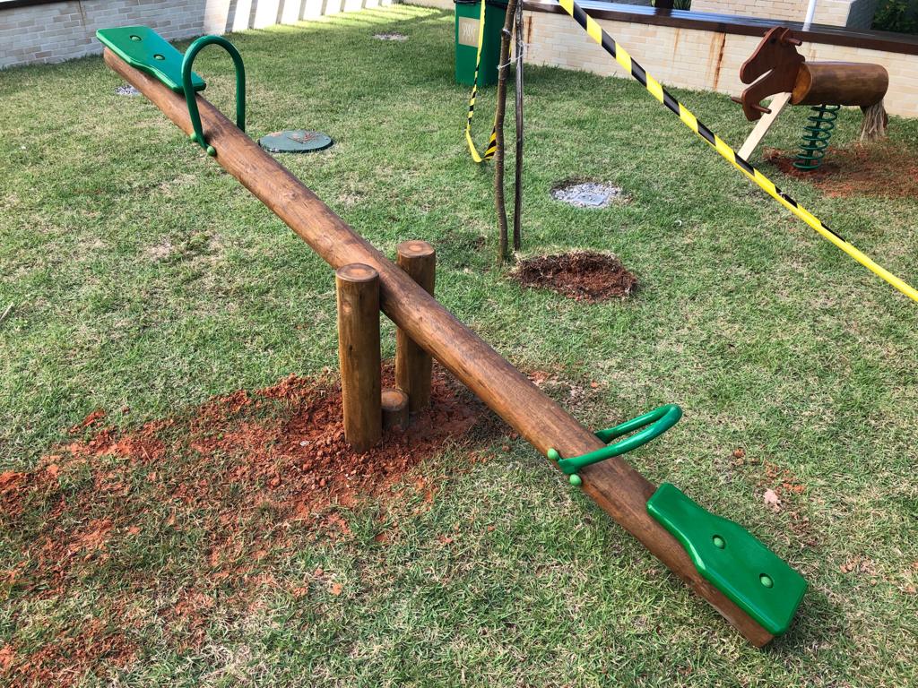 Produzida em fibra de vidro na cor verde, com pega-mão em ferro galvanizado e com pintura epóxi e protetor de cabeça de parafuso. Nossa gangorra deixa seu espaço mais divertido e dinâmico.