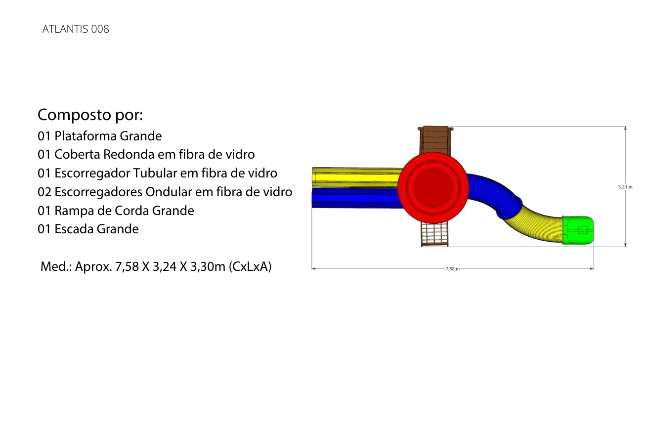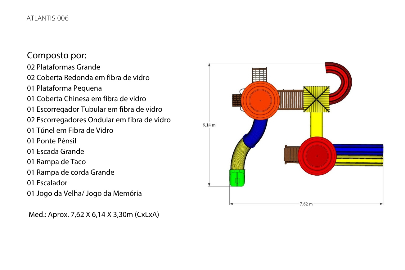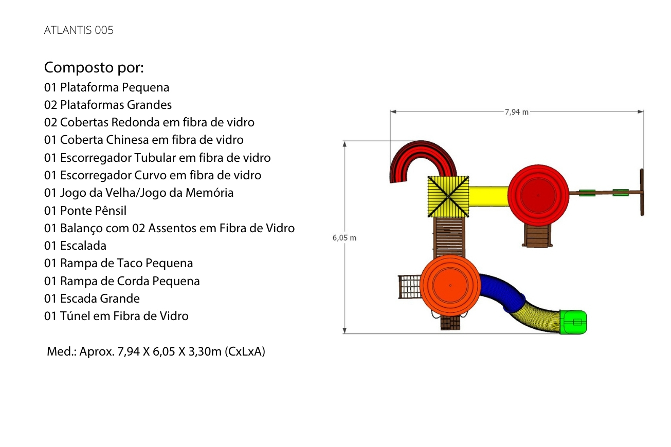 Mais uma Linha perfeita para a garotada se divertir! Essa é a nossa Linha Atlantis, que além de super colorida, possui escorregadores tubulares entre outros equipamentos, para deixar o espaço ainda mais otimizado com muitas opções de brincadeiras para as crianças. Assim como as outras linhas da Brinq & Play, ela é produzida em eucalipto autoclavado, madeira de lei, com um acabamento das peças feito com lixamento e aplicação de Osmocolor Stain. Os escorregadores, cobertas e túneis são feitos em fibra de vidro.