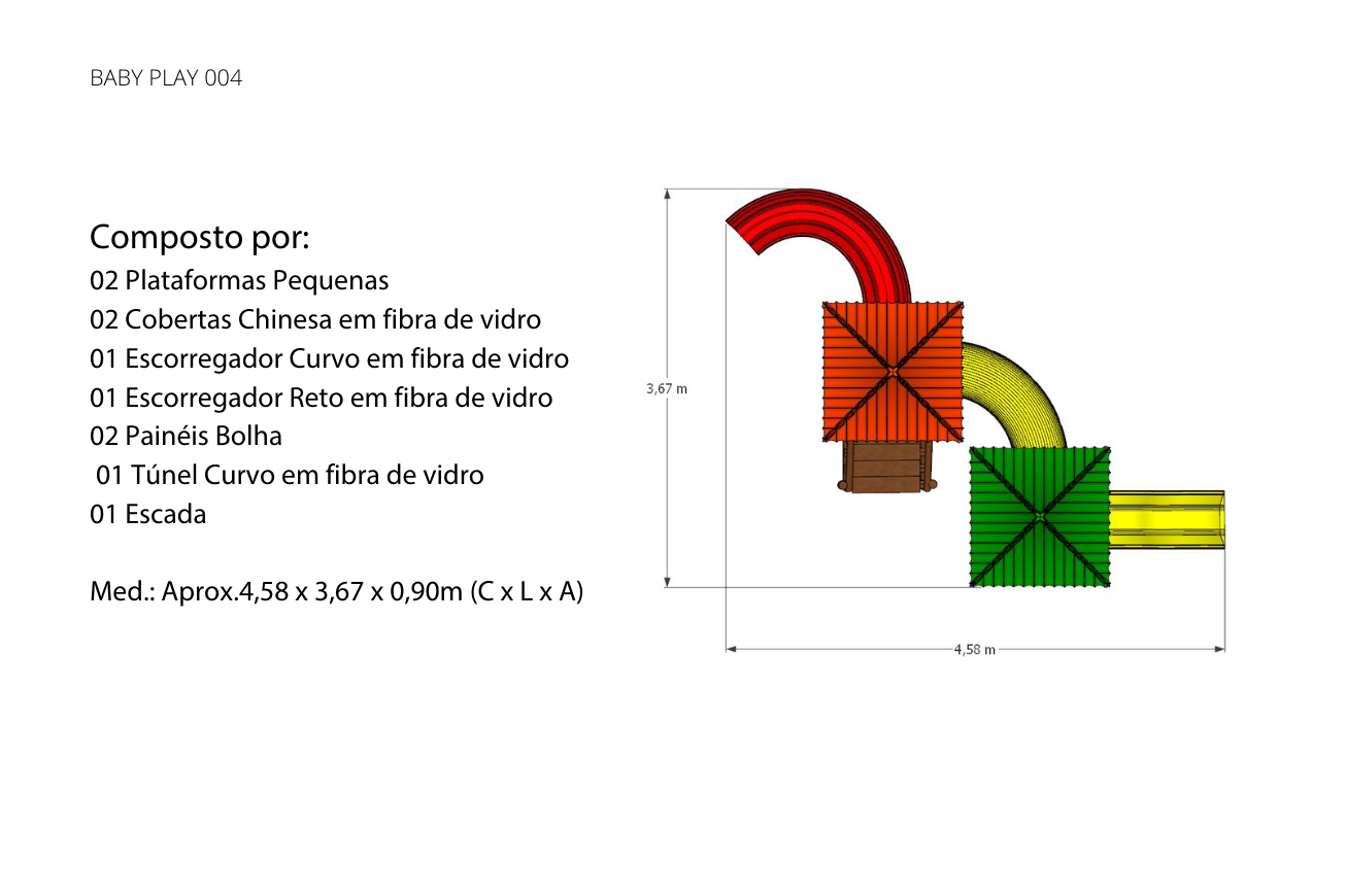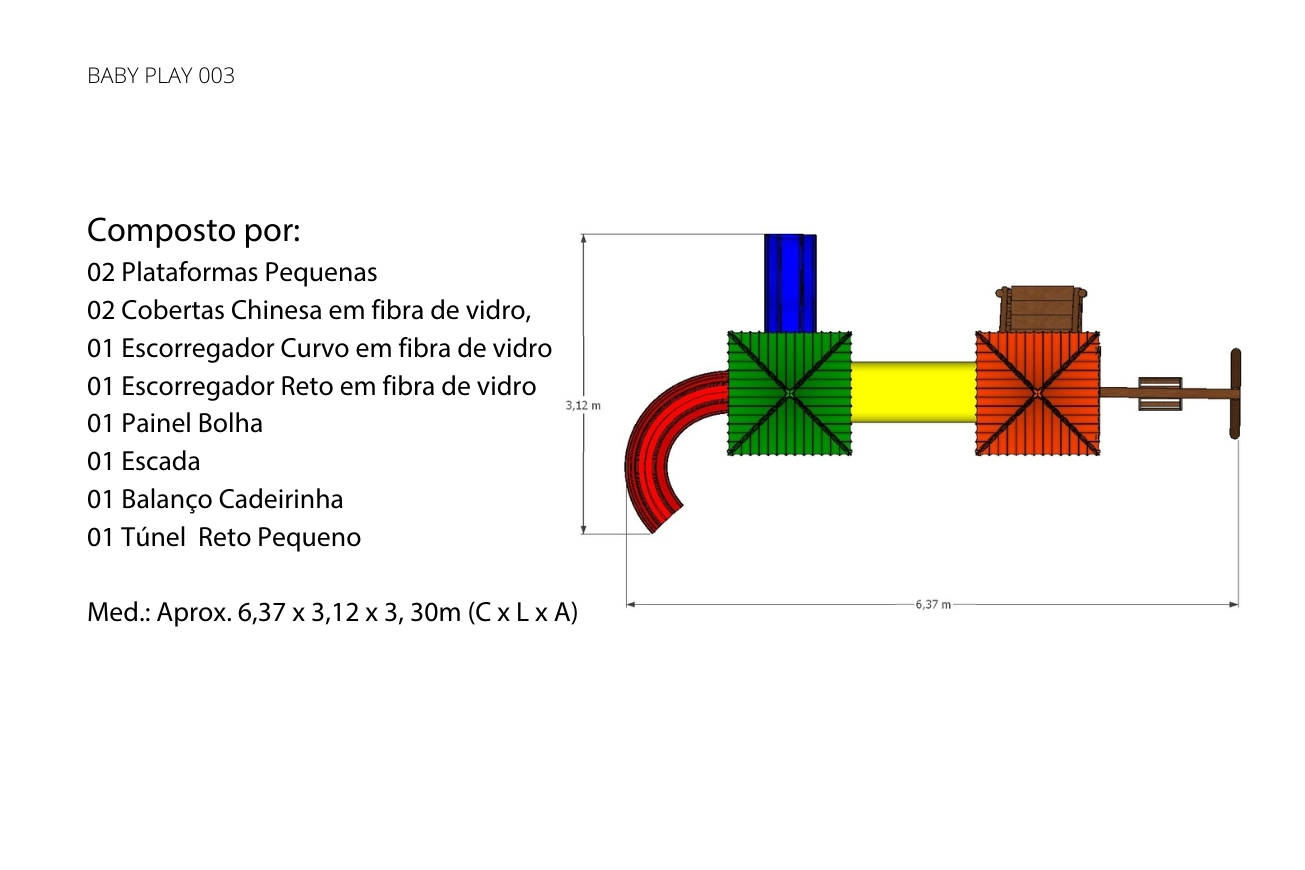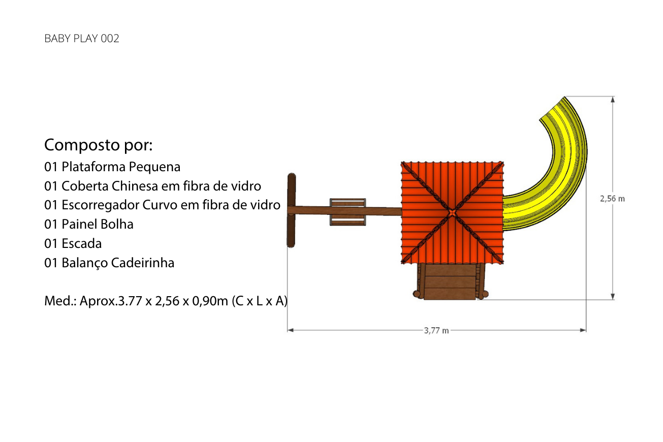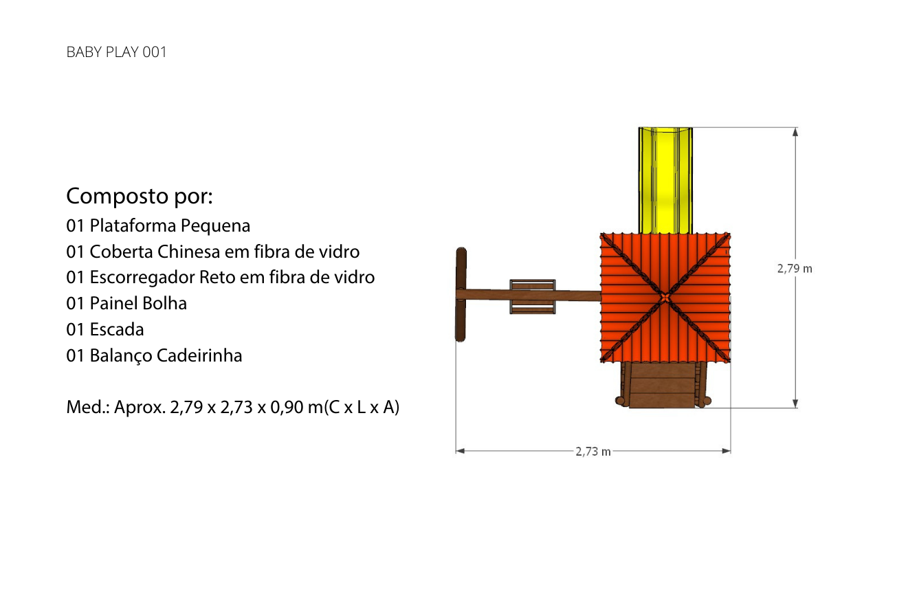 A linha Babyplay foi desenvolvida para atender uma antiga demanda dos consumidores, para diversão de crianças na idade entre 2 e 6 anos. Com uma estrutura mais compacta que as outras linhas, ela garante a segurança das crianças menores na hora da diversão, e possui um alto padrão de qualidade. Em sua maioria, os modelos possuem plataformas, escorregadores e balanços, e toda a matéria prima utilizada é composta por eucalipto autoclavado e madeira de lei, com um acabamento das peças feito com lixamento e aplicação de Osmocolor Stain. Os escorregadores, cobertas e túneis são feitos em fibra de vidro.